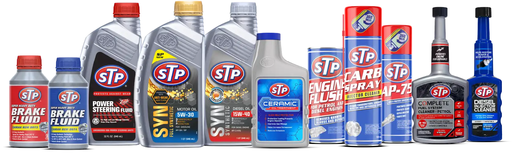Produk STPSelama lebih dari 60 tahun - dan untuk jarak tempuh yang lebih jauh dari yang dapat dihitung oleh siapa pun - STP® telah menjadi salah satu nama yang paling tepercaya dalam perawatan mobil. Sebagai bagian dari perawatan dasar rutin Anda, menggunakan produk STP® dapat membantu mesin Anda bekerja lebih baik dan lebih lama.